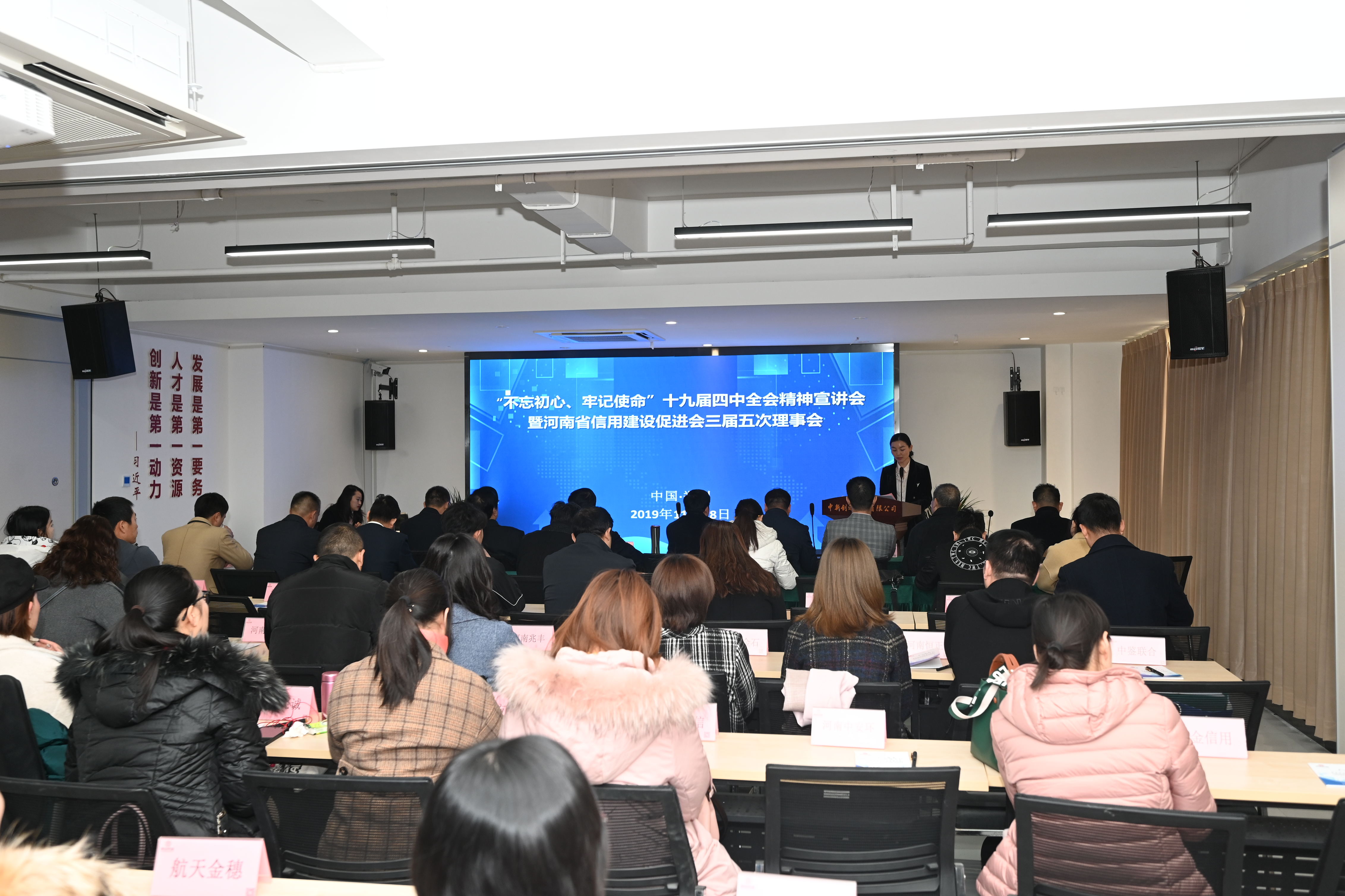 2019年11月28日,“不忘初心、牢記使命”十九屆四中全會精神宣講會暨河南省信用建設促進會三屆五次理事會在中新創達咨詢有限公司順利召開。公司董事長楊明宇當選河南省信用建設促進會會長。