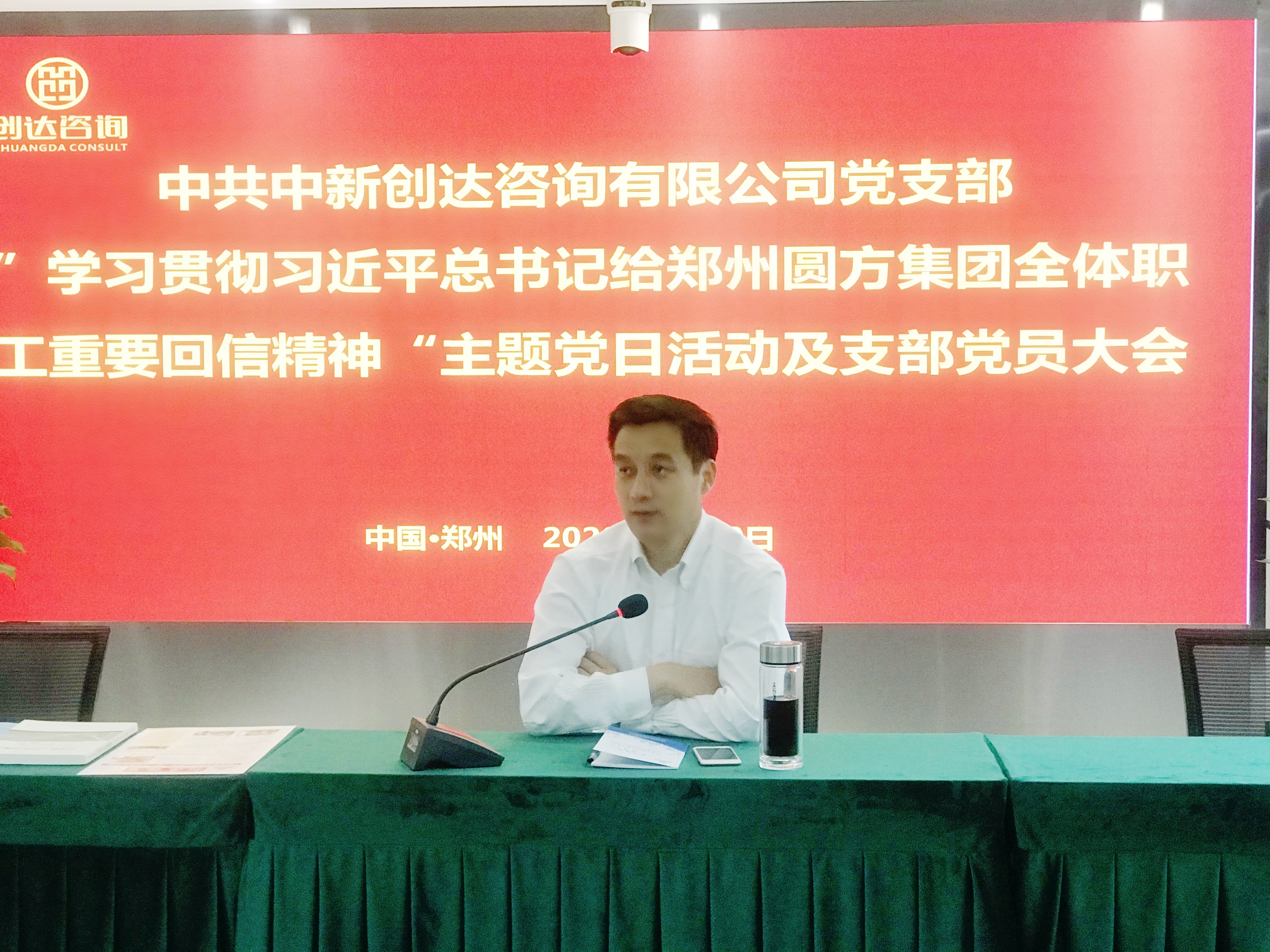 5月11日下午,創達黨支部組織召開學習貫徹習近平總書記給鄭州圓方集團全體職工的重要回信精神座談會。公司董事長楊明宇、黨支部書記董高峰、副書記王恒瑩、工會主席宋東安、團委書記秦姍姍及黨工團成員代表參加會議。