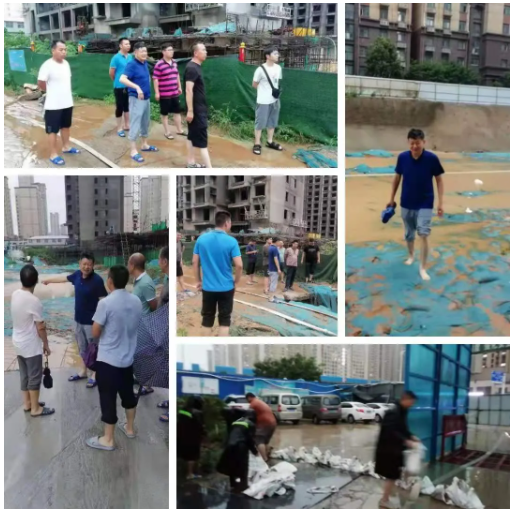 各項目部在暴雨來襲第一時間啟動安全防汛應急預案,各項目負責人帶領人員對現場進行全面排查,全力以赴防汛抗洪,最大限度降低災害對工程的影響。月20日-22日,黨支部書記董高峰深入到項目一線指導項目開展安全防汛工作。